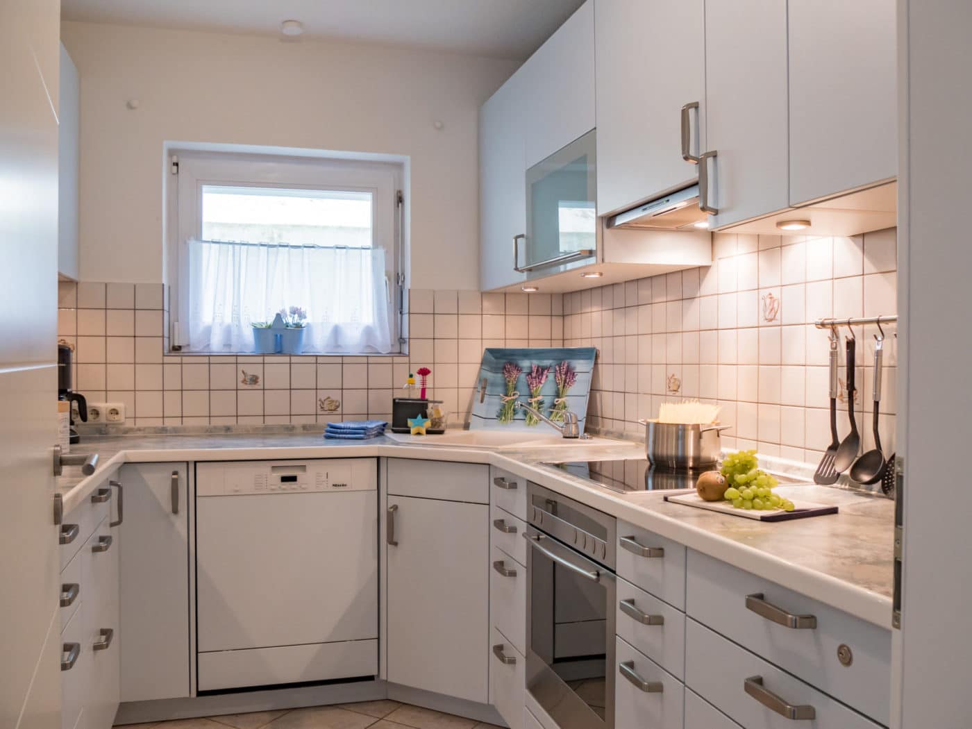 In der modern eingerichteten Küche finden Sie alles, was Sie für Ihren Urlaub in der Ferienwohnung brauchen. Neben herkömmlichen Dingen wie Herd, Backofen, Kühlschrank und Kochutensilien ist die Küche auch mit einer Spülmaschine ausgestattet, sodass Sie auch im Urlaub kein Geschirr spülen müssen. Für die Frühstückszubereitung stehen Ihnen eine Kaffeemaschine und ein Toaster zur Verfügung und die Mikrowelle steht als Küchenhelfer ebenfalls für Sie bereit.